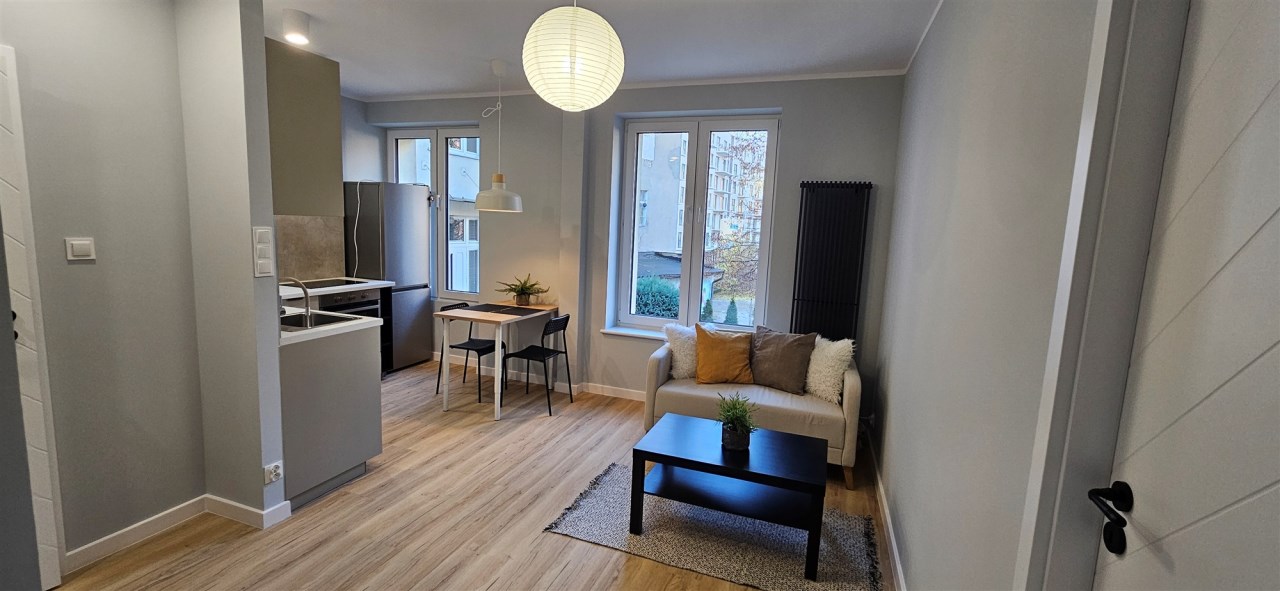 Przytulne, nowocześnie zaaranżowane, umeblowane mieszkanie typu studio o pow.34m2. Po generalnym remoncie - do pierwszego zasiedlenia.