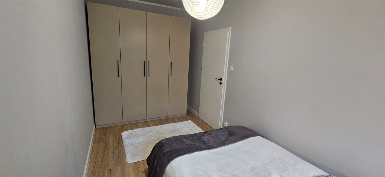 SYPIALNIA: łóżko, pojemna szafa.