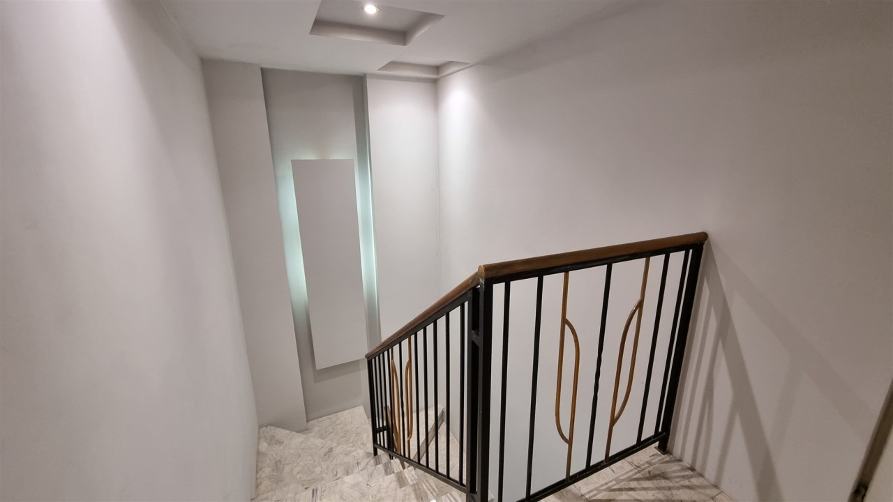 ELEGANCKA KLATKA SCHODOWA : schody betonowe, okładzina podłoga marmur, barierki metalowe