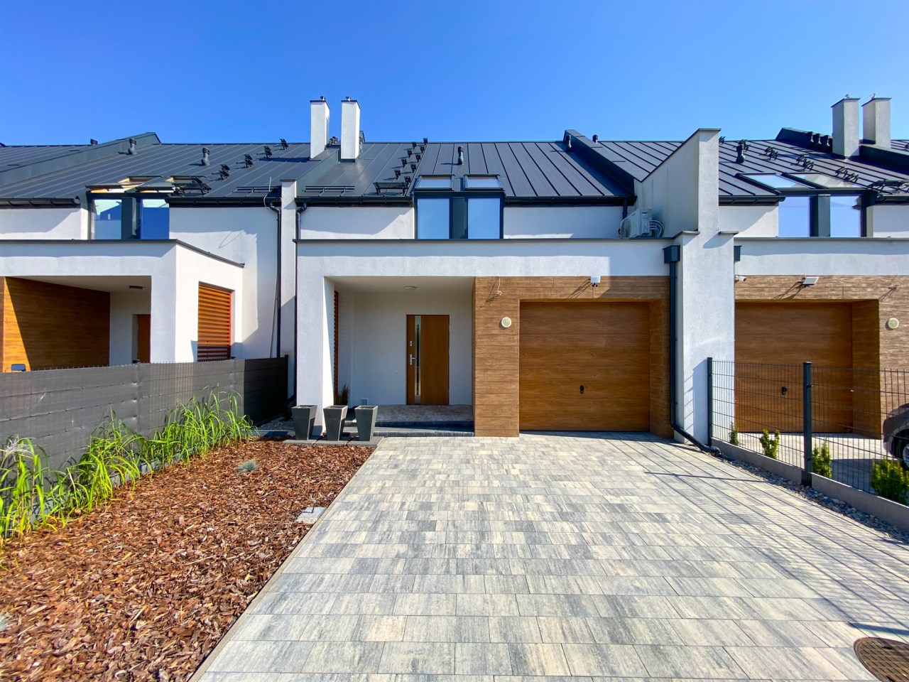 Oferujemy nowoczesny dom jednorodzinny w zabudowie szeregowej, położony przy spokojnej i cichej ulicy Pistacjowej, w otoczeniu domów jednorodzinnych. Lokalizacja zapewnia prywatność, dostęp do terenów zielonych oraz wygodny dojazd do centrum miasta.
