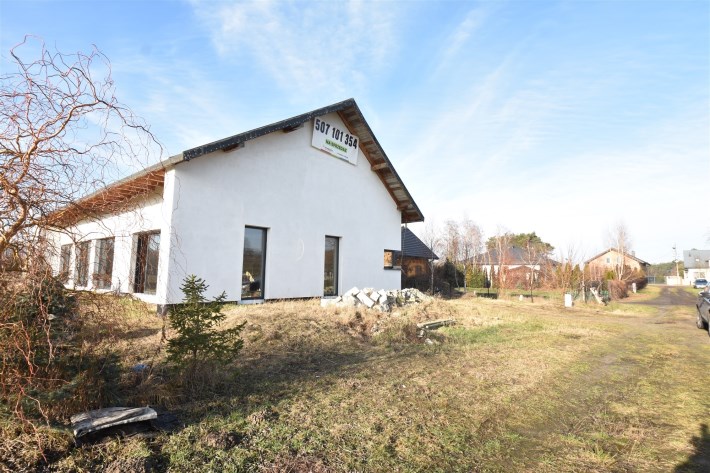 Dom został zaprojektowany w popularnym stylu stodoły, zachwyca swoją prostotą i elegancją. Wielkoformatowe przeszklenia wpuszczają mnóstwo światła, oferując niesamowite widoki na łąki i pola, które już na zawsze pozostaną częścią krajobrazu. Budynek został solidnie wykonany – zbudowany z gazobetonu Solbet 500, dach pokryty dwukrotnie papą, a okna zamontowano w technologii ciepłego montażu.