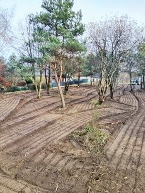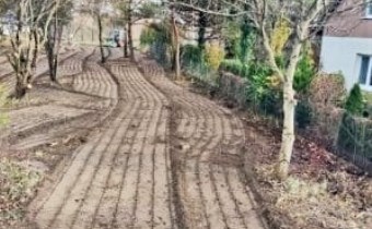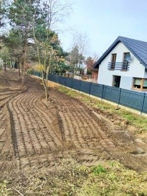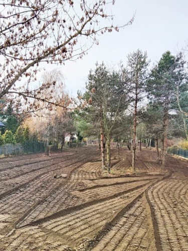 Działka prostokątna o wymiarach ok. 28 m (front) x ok. 78 m, częściowo ogrodzona. Dojazd asfaltowy z dwóch stron. Działki niezabudowane, z nasadzeniami (samosiejki) - krzewy, drzewa.