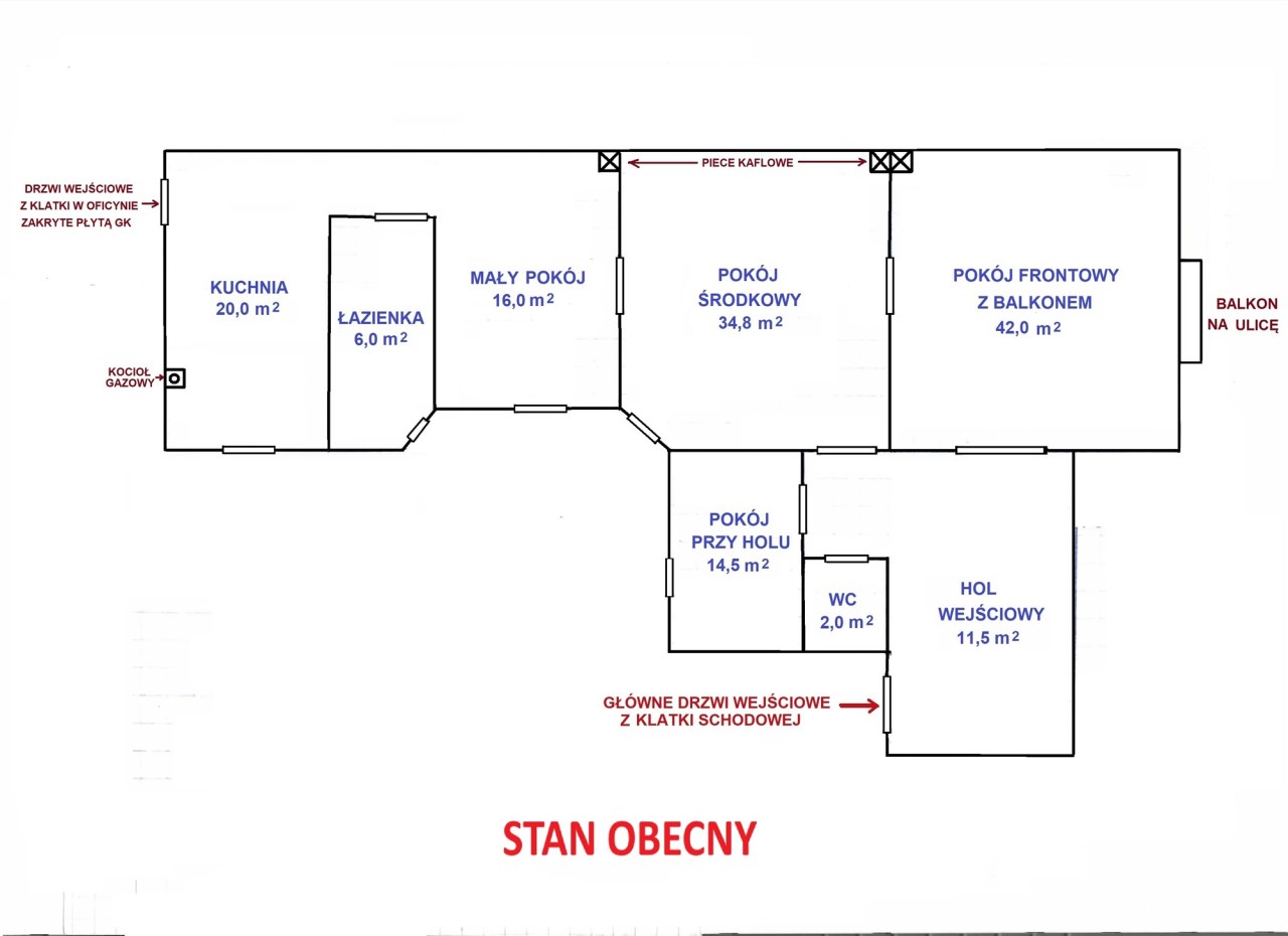 - ROZKŁAD: nie, pokoje w amfiladzie, pokój przy holu osobne wejście - UWAGA: przedstawiona propozycja nowej adaptacji na cele mieszkalne pod warunkiem zmiany usytuowania pieca gazowego np. do łazienki - do skonsultowania z architektem i kominiarzem !