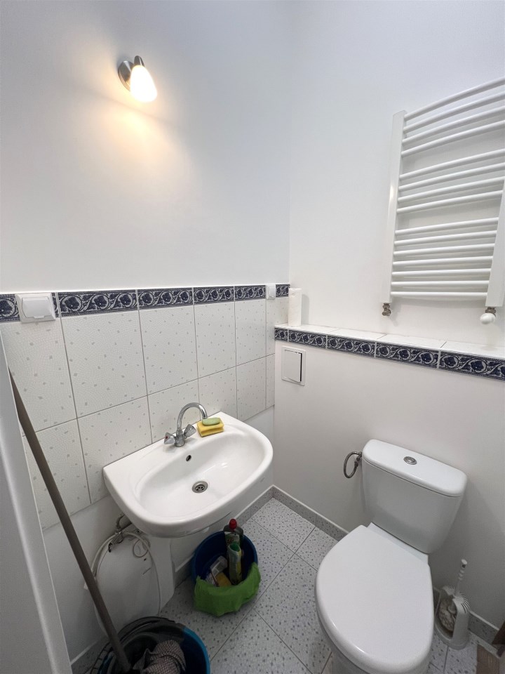 - WC: 2,0 m², przy holu wejściowym, sedes, umywalka, elektryczny przepływowy podgrzewacz wody,
