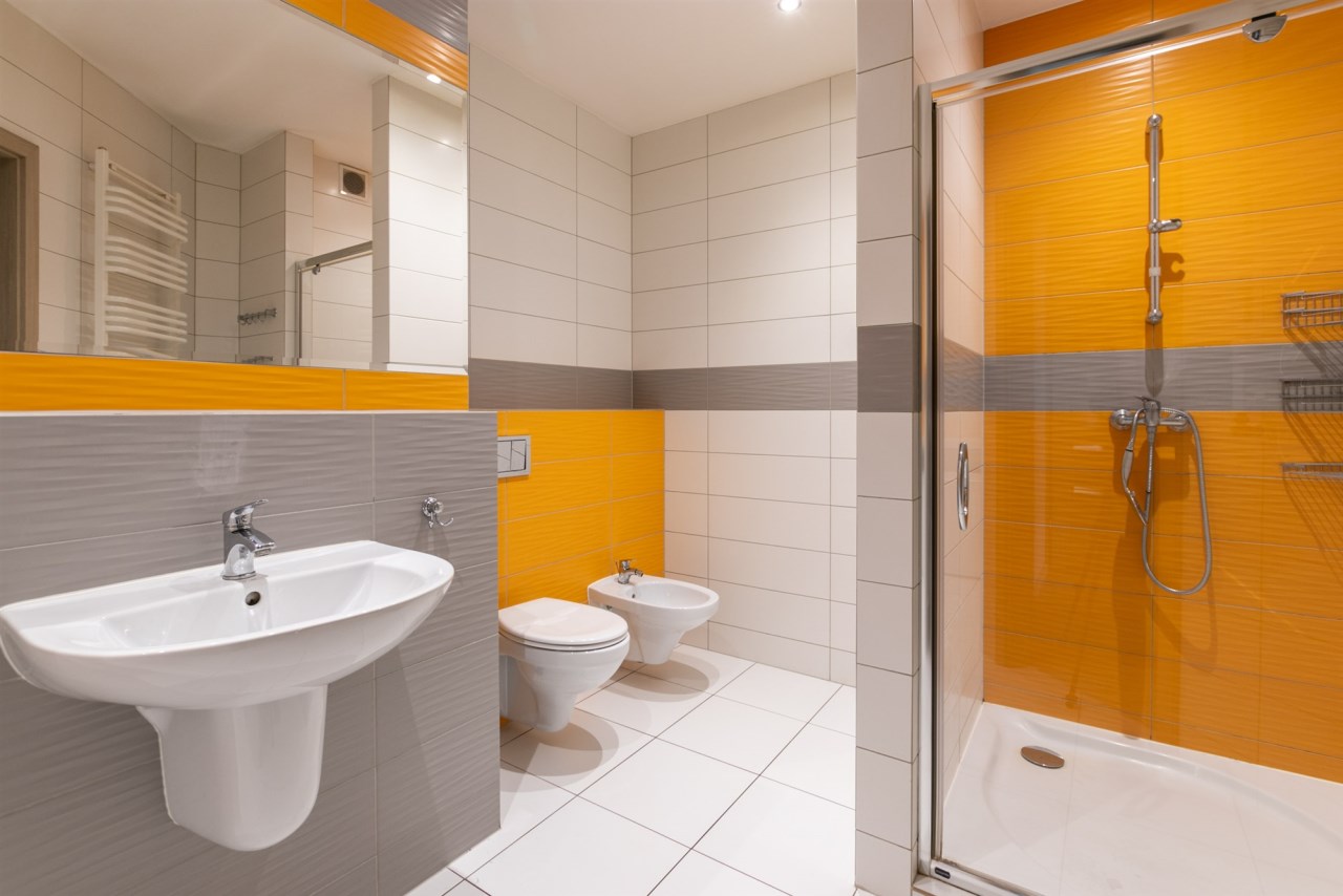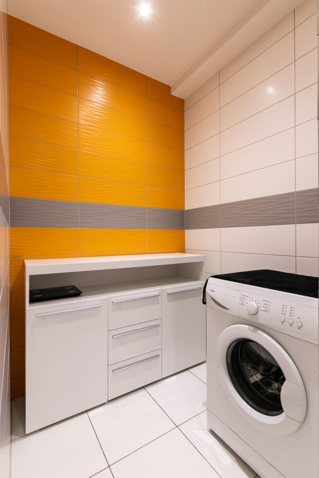 Mieszkanie posiada dużą łazienkę z pralnią oraz wc.