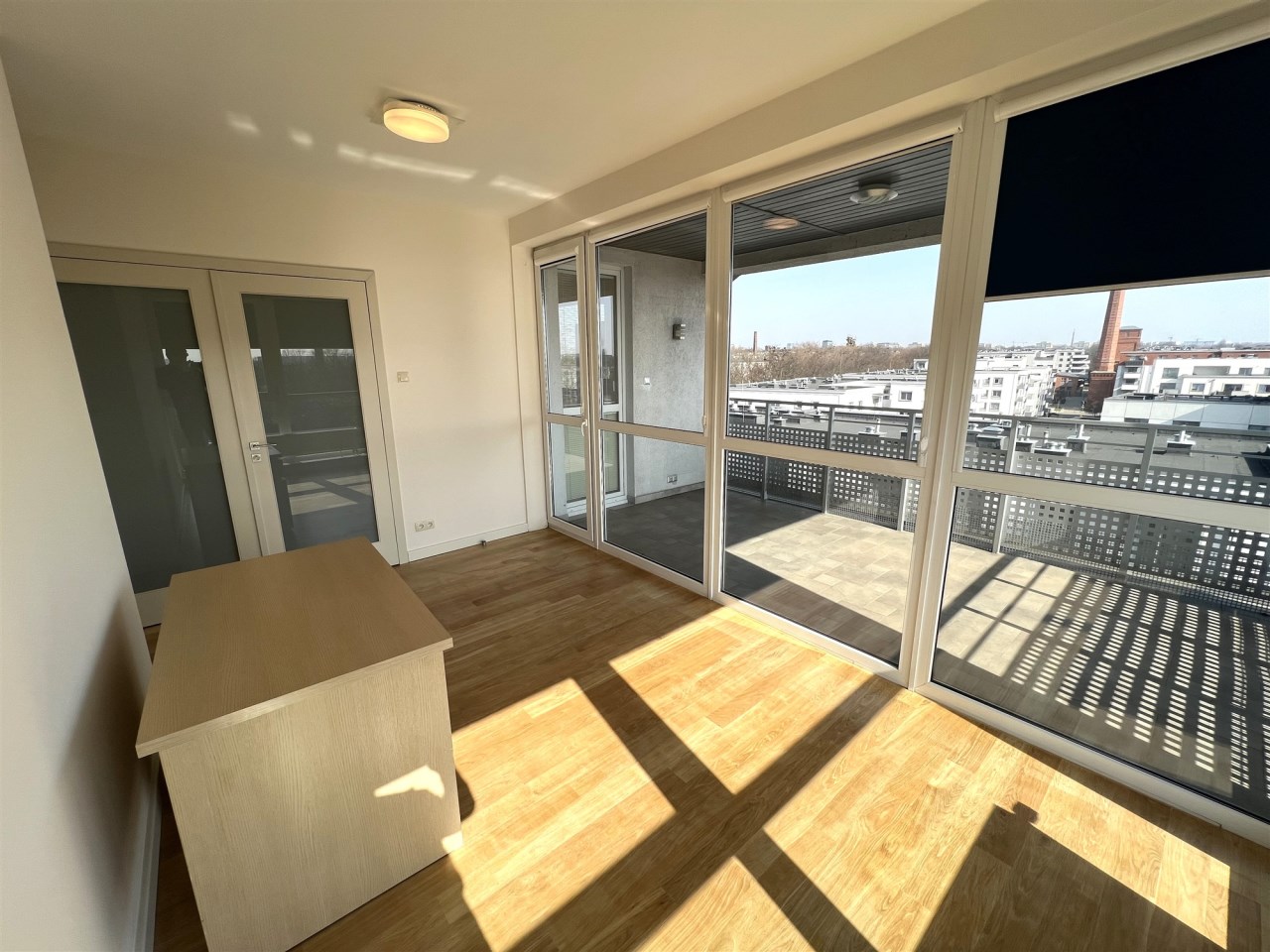 - GABINET: 13,54 m², przeszklone ściany od strony wschodniej i południowej, klimatyzator, wyjście na duży 14-metrowy taras typu loggia od strony płd-wsch,