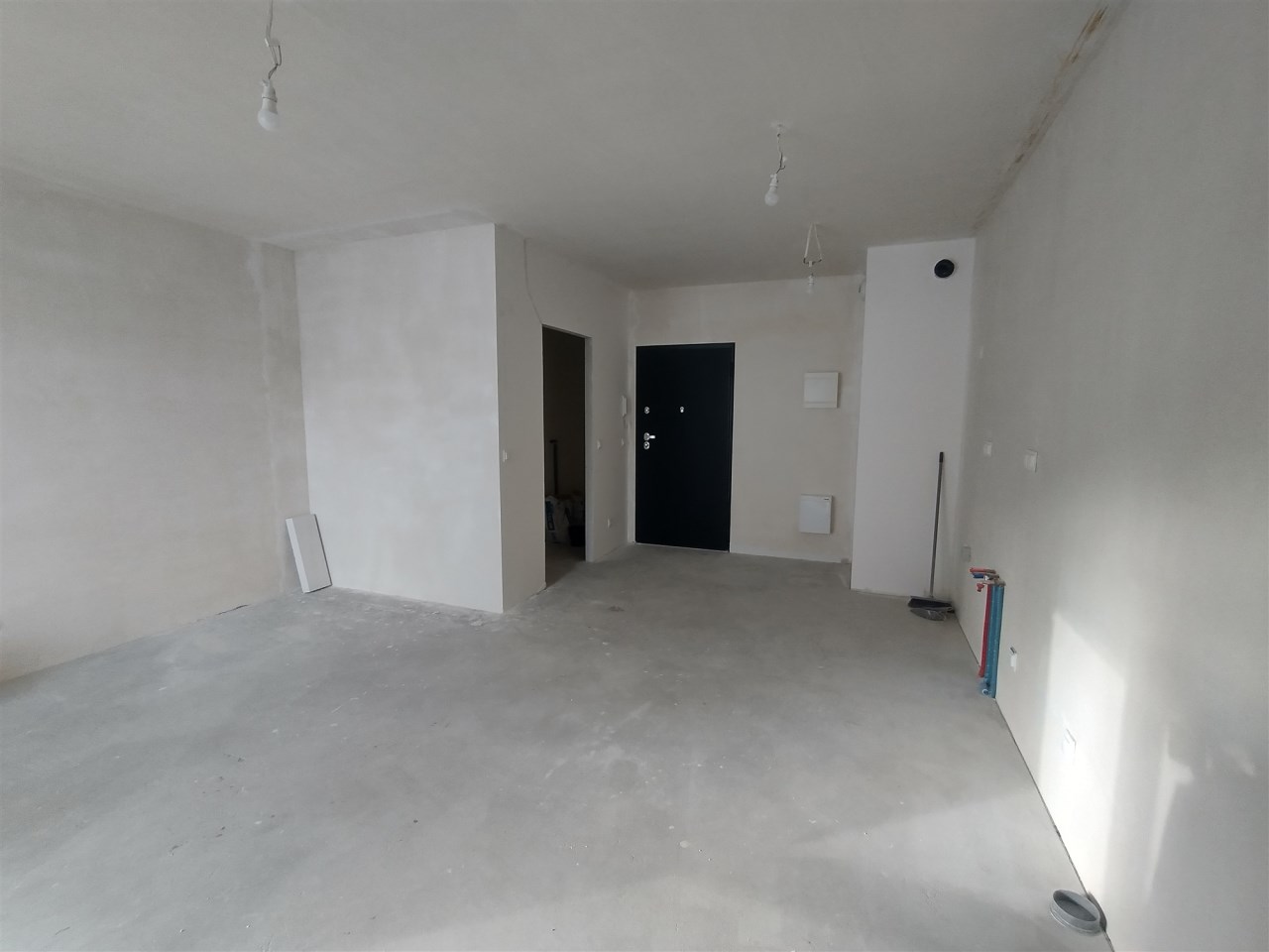 W skład mieszkania wchodzą pokój z aneksem kuchennym, przedpokój i łazienka z toaletą. Z pokoju wyjście na balkon.