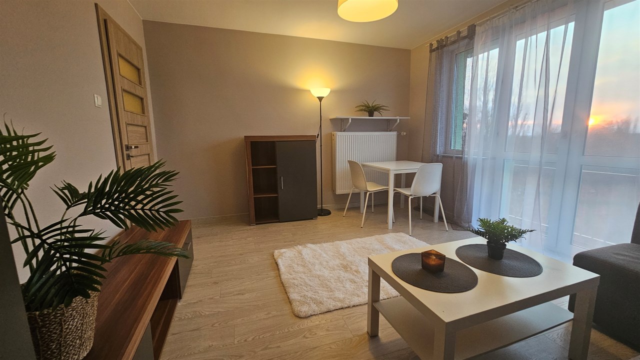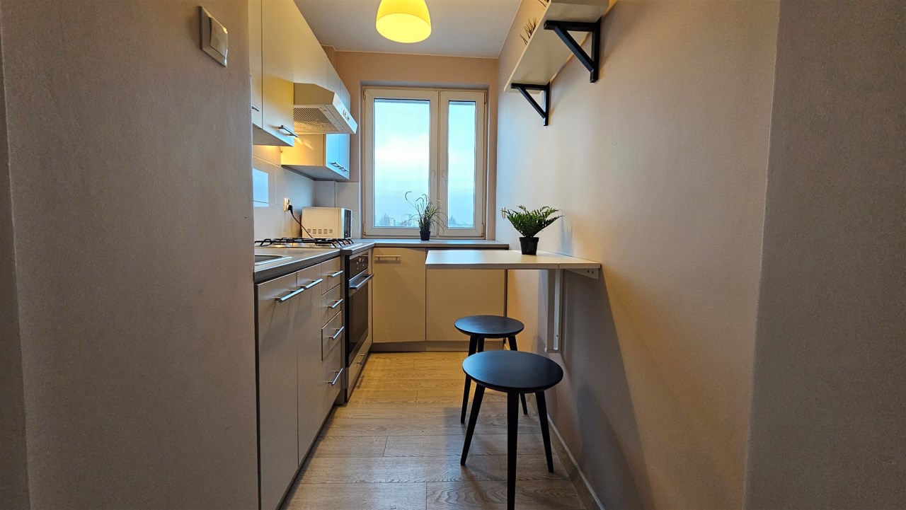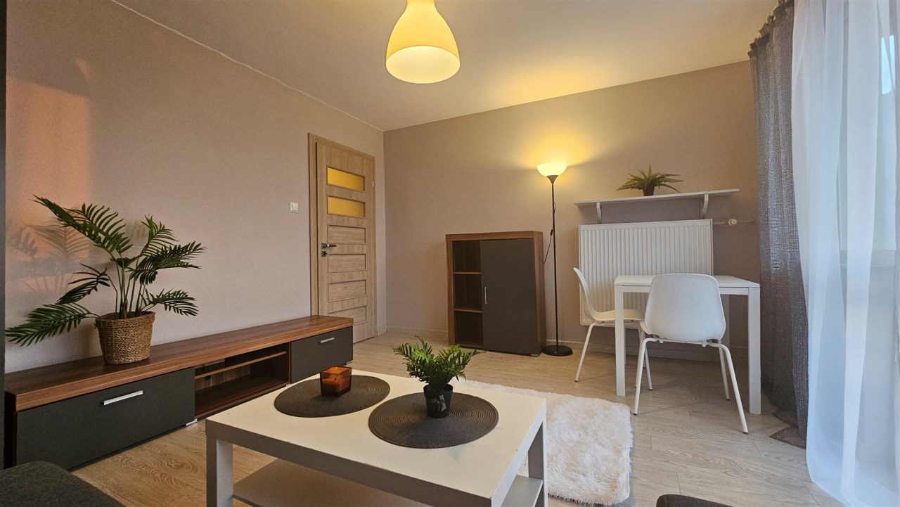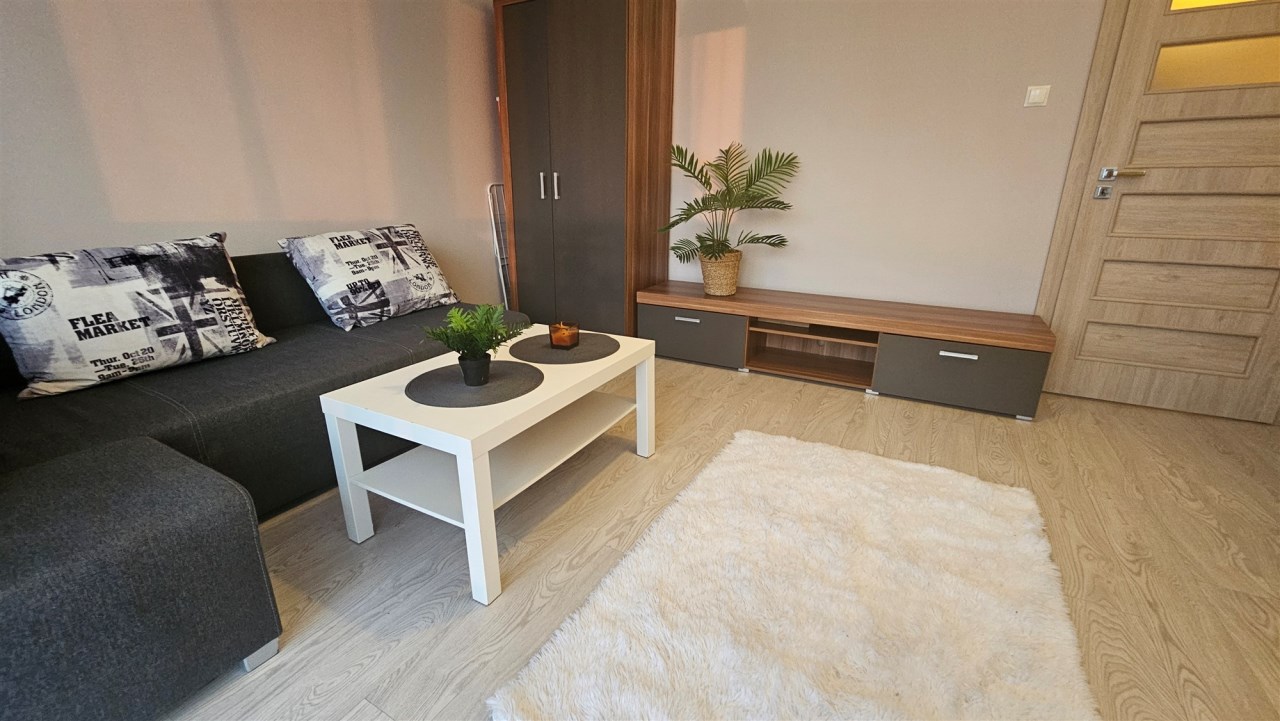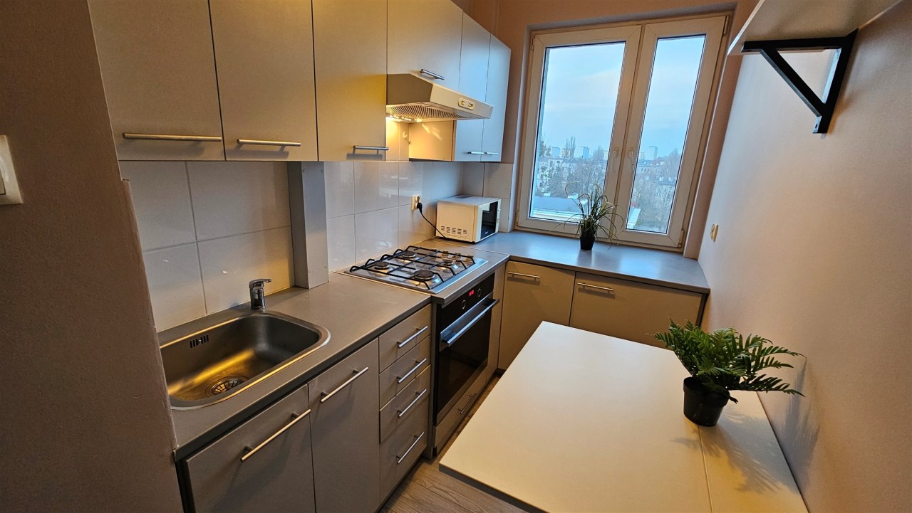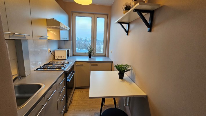 W lokalu może pozostać pełne wyposażenie (2 kanapy z funkcją spania, komoda, stół, szafa, meble kuchenne, lodówka, płyta gazowa, piekarnik, pralka, stolik kawowy).