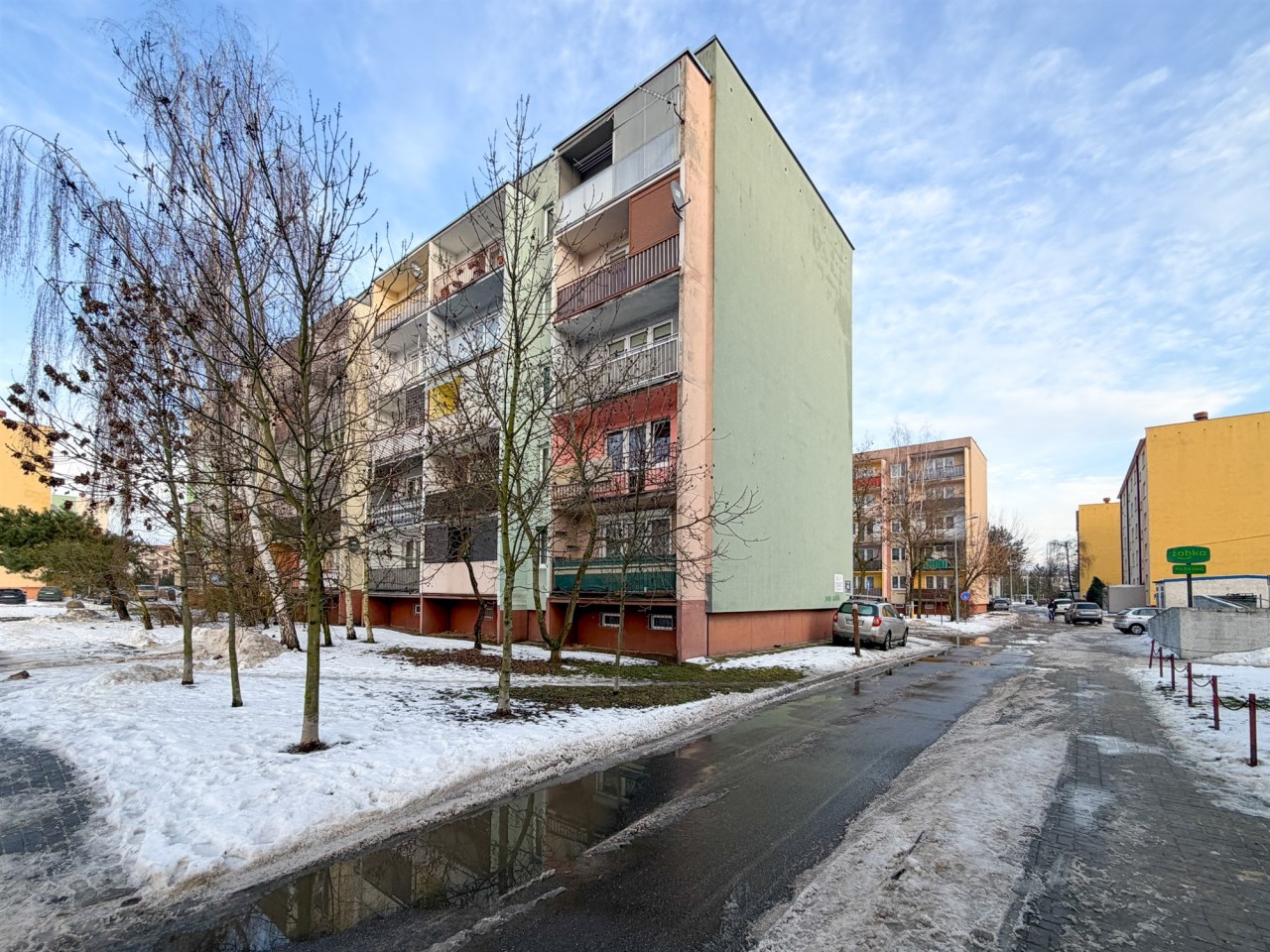 Blok ten jest ocieplony i otynkowany. Miejsca parkingowe przed blokiem, klatka schodowa zadbana.