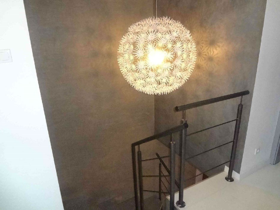 - STANDARD WYKOŃCZEŃ: na podłodze w salonie parkiet, w holu wejściowym gres szkliwiony, w sypialniach na antresoli wykładziny, terakota w łazience na górze, w łazience na dołu oryginalne wykończenie z blachy aluminiowej, na ścianach gładzie gipsowe, okna dachowe drewniane, całość bardzo gustownie wykończona.