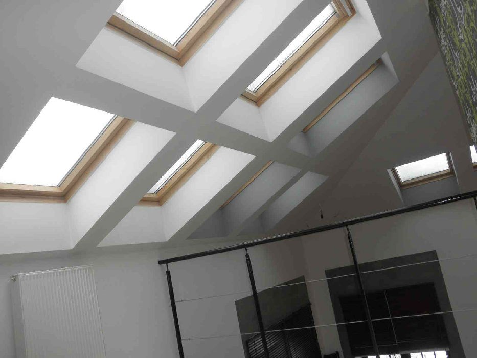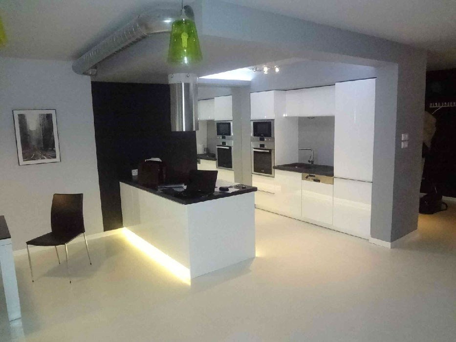 - SALON Z ANEKSEM KUCHENNYM: olbrzymi salon, który w najwyższym punkcie ma 6m wysokości, duże okna typu witryna bardzo dobrze doświetlające całą powierzchnię (dodatkowo okna dachowe), na podłodze parkiet, w salonie skórzany komplet wypoczynkowy (narożnik + ława skórzana), szezląg, szafka pod telewizory, telewizor 42", zestaw kina domowego,