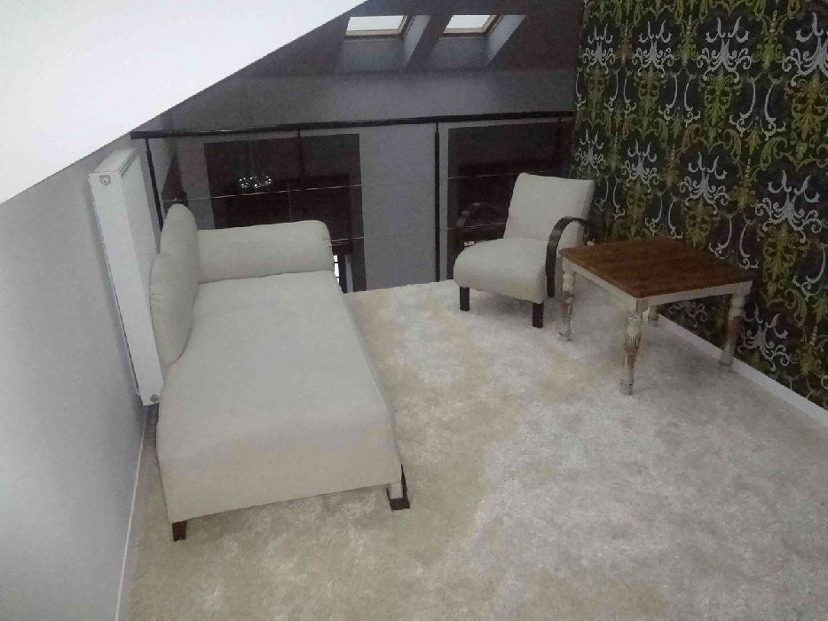 - STANDARD WYKOŃCZEŃ: na podłodze w salonie parkiet, w holu wejściowym gres szkliwiony, w sypialniach na antresoli wykładziny, terakota w łazience na górze, w łazience na dołu oryginalne wykończenie z blachy aluminiowej, na ścianach gładzie gipsowe, okna dachowe drewniane, całość bardzo gustownie wykończona.